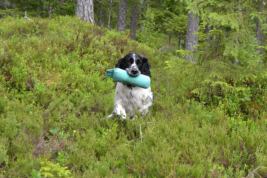 Bitten apporterer bra og hadde flere fine avleveringer. Vi må trene mer på svømmeteknikk og «stadga», som svenskene kaller det. Når dummyen kastes i vann eller hun ser andre hunder jobbe med vannarbeid blir hun overivrig, noe som resulterer i lyd og manglende ro på «standplass».