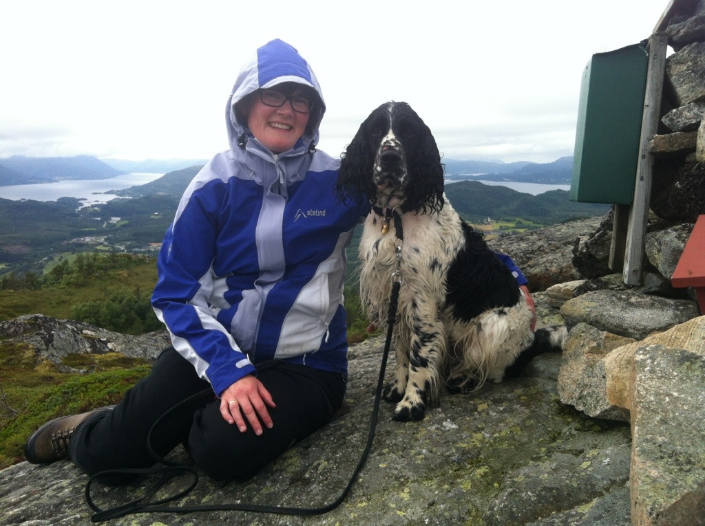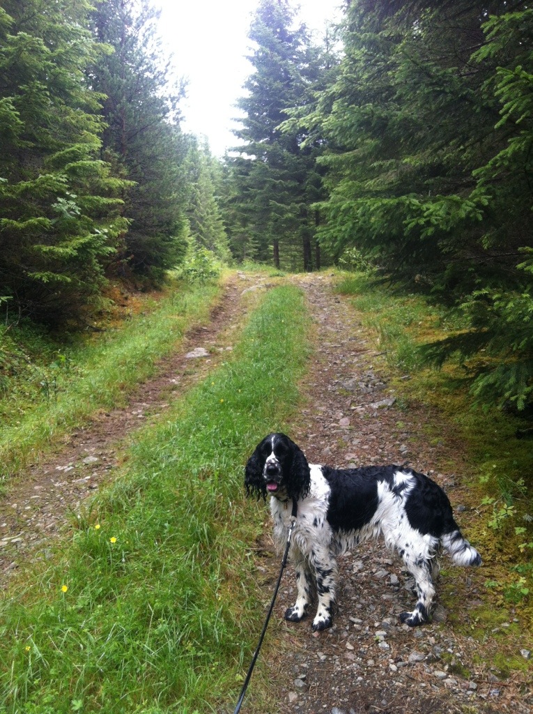Vi fulgte en idyllisk skogsvei det meste av veien. Fra toppen hadde vi flott utsikt mot Halsa, Tustna, Kristiansund, Frei, litt av Smøla og Batnfjord 🙂 Det blåste en del på toppen (435 m), så vi rastet i en gapahuk litt lengre ned 🙂 Vi så en god del moltekart 🙂