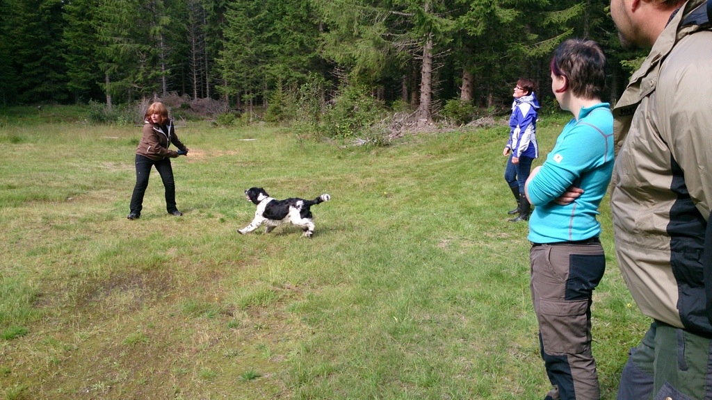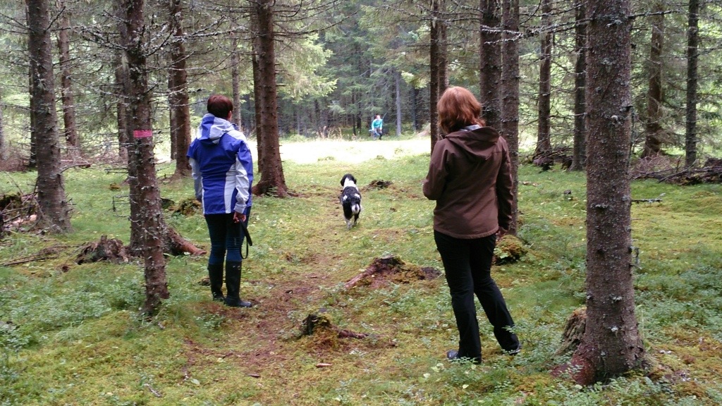 Vi møtte også spøkelser i skogen. De kom gradvis mot oss, gitt 😀 Her testes blant annet hundens redsel, trusler, aggresjonsatferd, nysgjerrighet og kontakt: