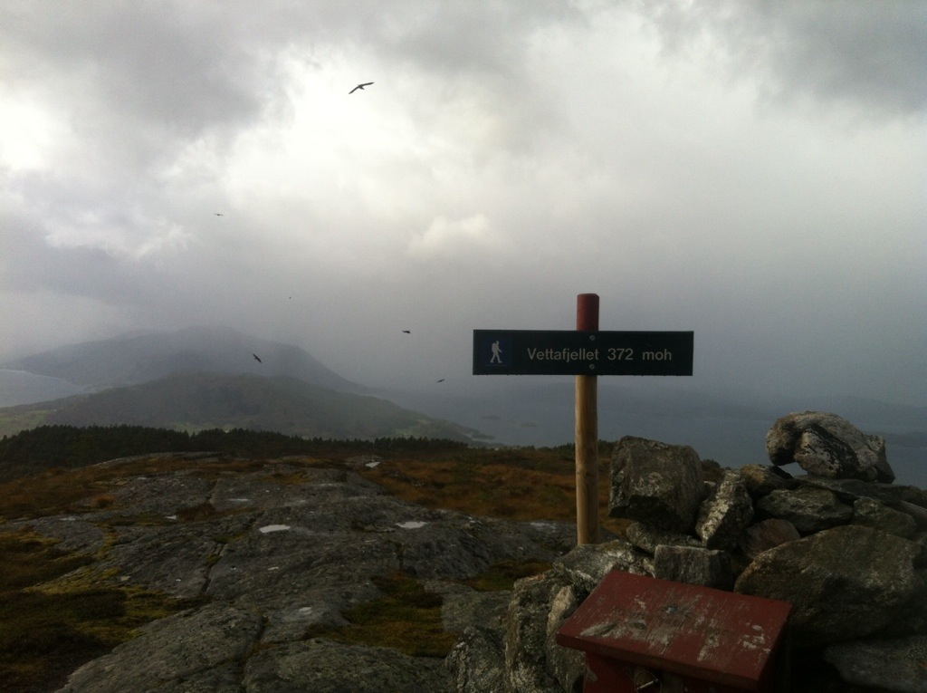 Jeg lurer litt på hvorfor det heter Vettafjellet. Kan det være på grunn av fuglene som kretser rundt toppen? Temmelig spooky syns jeg. Omtrent tjue svarte fugler kretset over oss da vi nærmet oss toppunktet. I norsk folketro var vel vettene et slags overnaturlig vesen? Vettene kunne vel innta flere former, blant annet fugler?