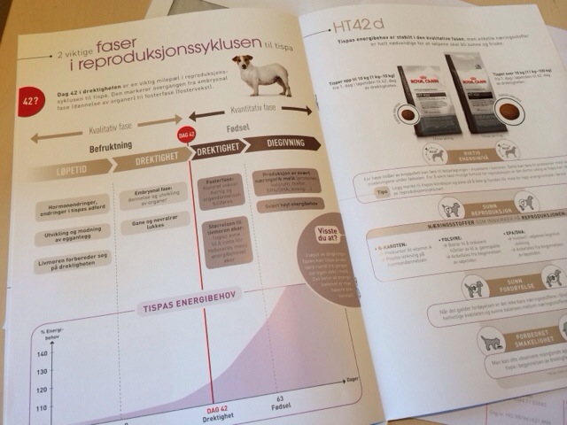 Her om dagen fikk jeg tilsendt informasjon om reproduksjon og HT 42d, et fôr som er spesiallaget for den viktige tiden fra løpetid til valpefødsel, melkeerstatning til valper (Babydog milk) og valpefor (starter).