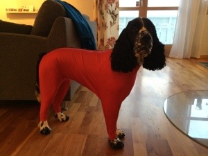 Se godt på hunden når du prøver dressen, det er viktig at hunden kan bevege seg fritt og at den kan gå på do med dressen på.