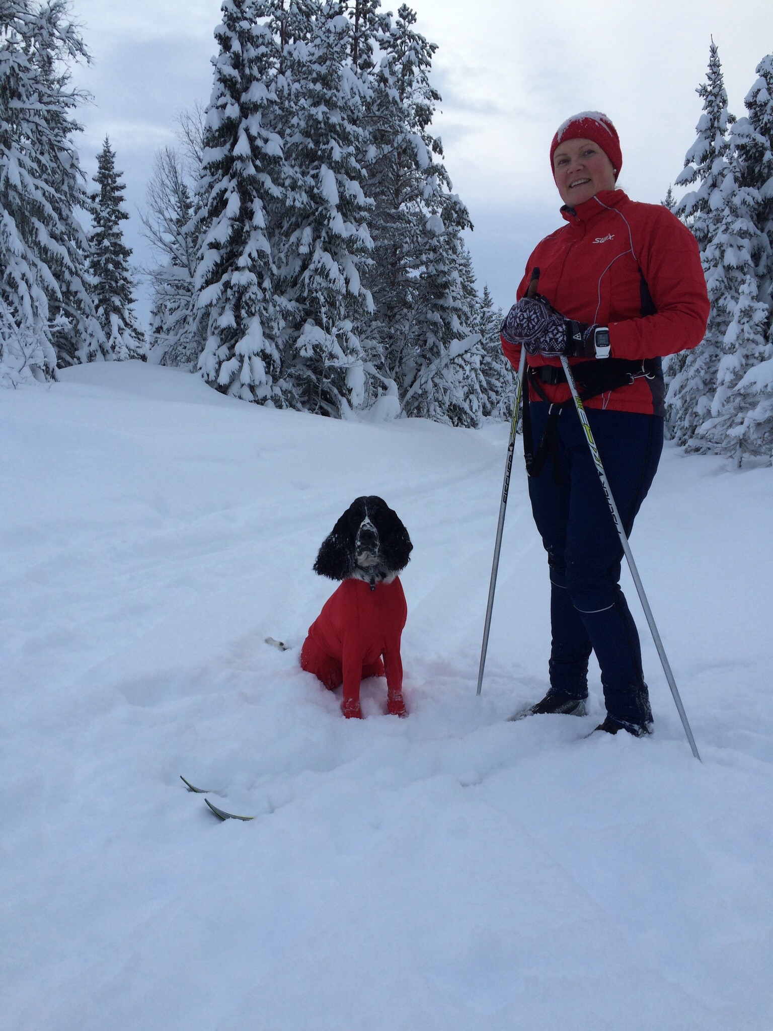 En gang hadde jeg en vanskelig opplevelse: Jeg trente til halvmaraton og la ut på skitur med en glad hund springende rundt meg. Plutselig oppdaget jeg at hunden lå langt bak meg, med pelsen full av kjempestore snøballer. Jeg klarte ikke å få fjernet snøballene, de hadde festet seg veldig godt til pelsen. En stund trodde jeg nesten at vi ikke skulle klare å komme tilbake uten hjelp. Jeg fjernet det jeg klarte av snøballene og vi beveget oss sakte men sikkert tilbake. Gjett om jeg var lettet da vi var tilbake ved bilen! Aldri mer, tenkte jeg, og investerte i en skidress – det har jeg ikke angret på!