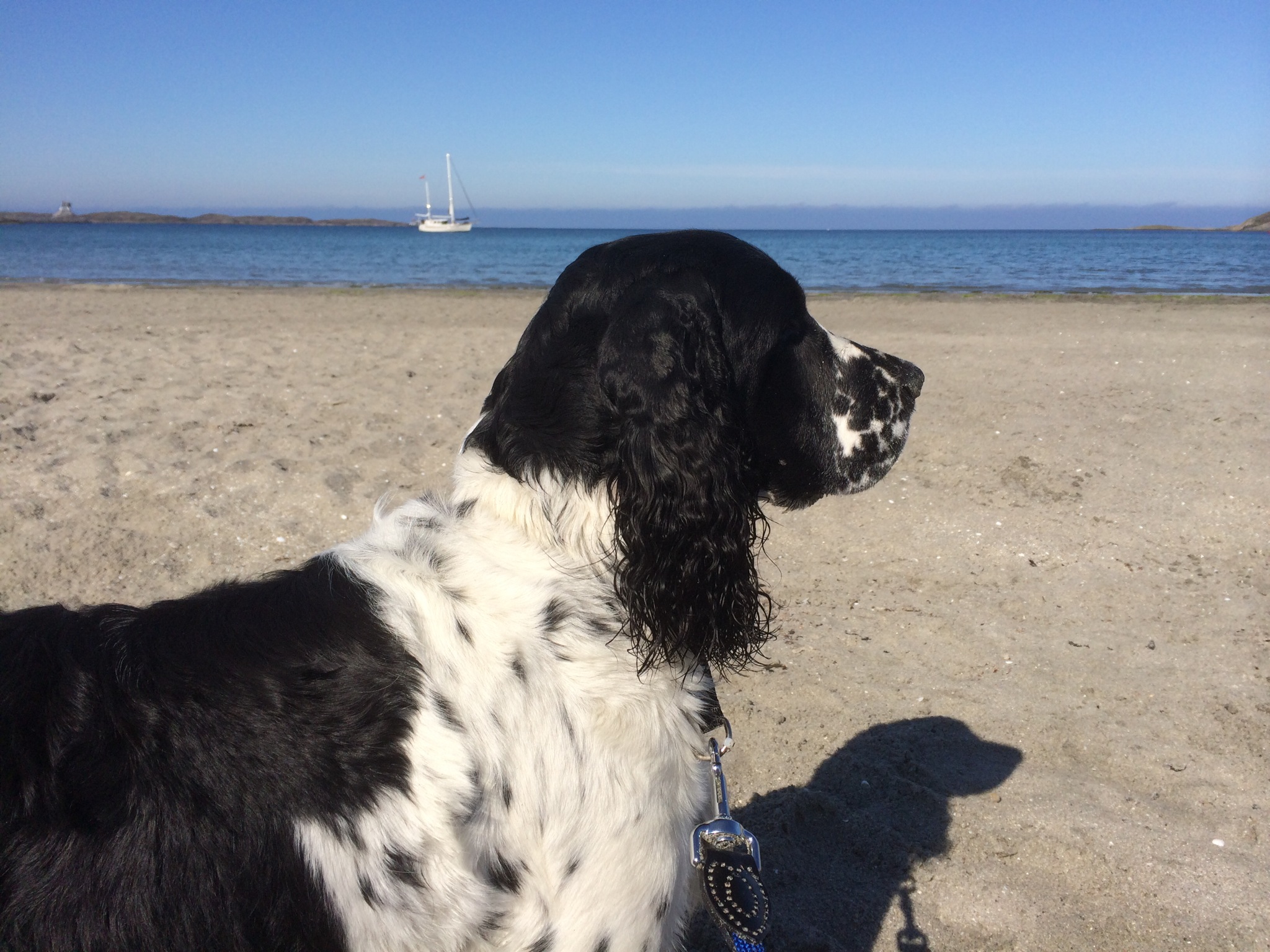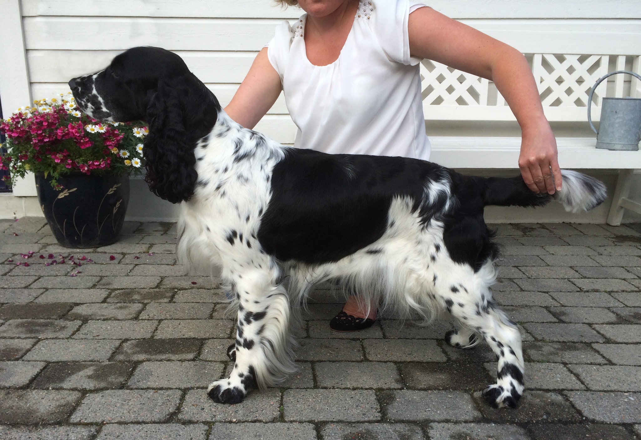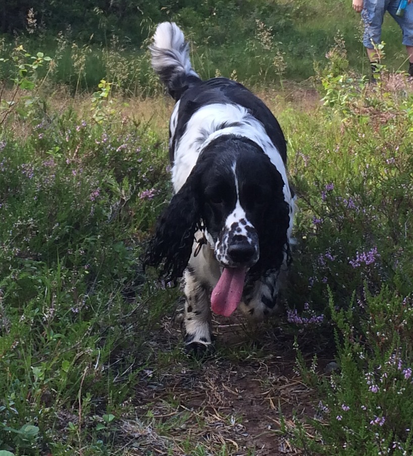 Vi har unngått hard trening og aktiviteter der hun kan slå seg i magen. I stedet har vi trent på lydighetsøvelser i vår egen hage, som fri ved fot, avstandskommandering og neseprøven. Litt utstillingstrening har det også blitt.