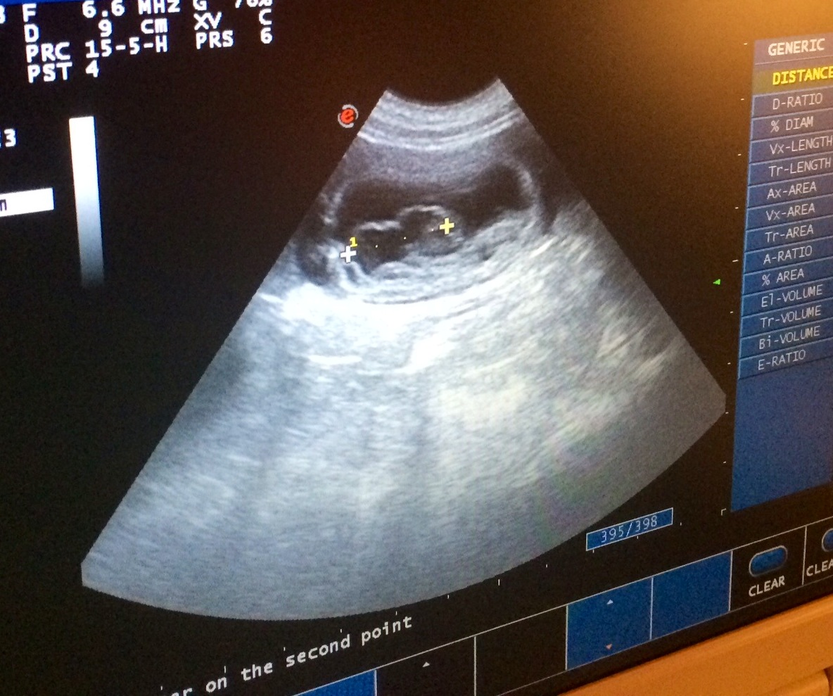 Fostrene er nå omtrent 1,7 cm lange, og man kan se fosterposer og små hjerteslag 🙂 Her kommer noen bilder fra ultralydundersøkelsen. Fotograf er Tommy Bratteng.