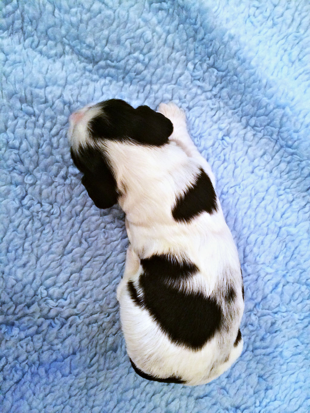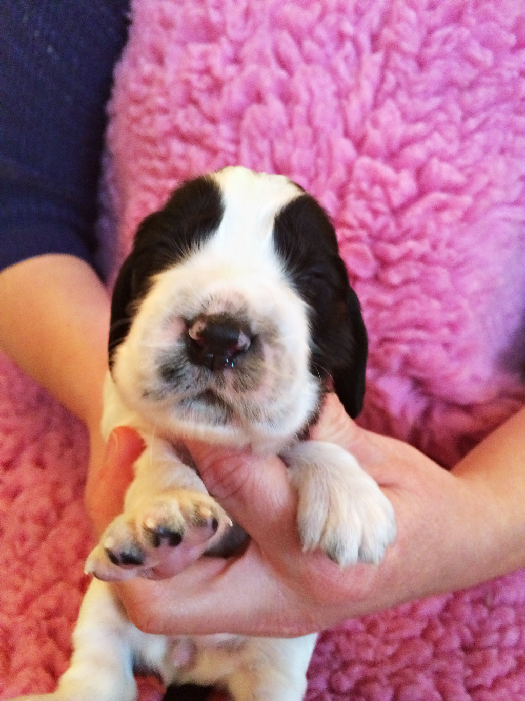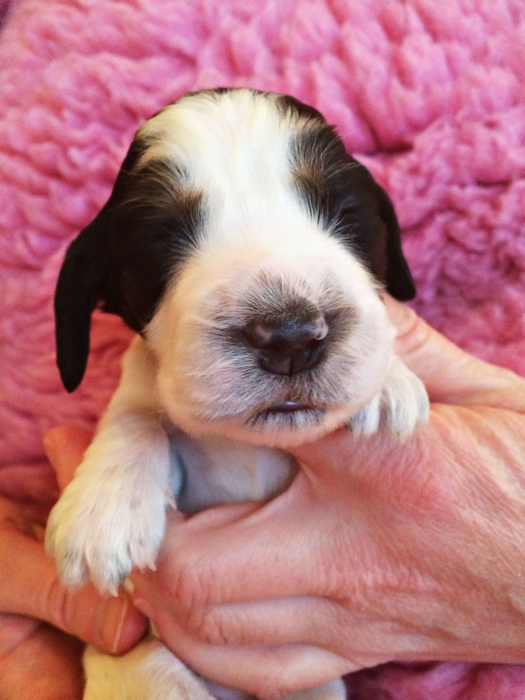 To uker har gått siden disse åtte hjerteknuserne ble født. Tiden har gått utrolig fort! Nå har to av valpene, Adira og Ace, begynt å få øyne. Synet er ikke utviklet enda, det utvikles gradvis i dagene og ukene som kommer. Alle valpene stabber nå rundt i valpekassa, men det går ikke lange stunden før de faller i søvn igjen. Vektutviklingen er fin, alle har fordoblet fødselsvekten sin og er friske og raske. Herlig! 🙂 De har fått ormekur, og jeg har klipt klørne deres to ganger allerede. Kloklipp må til, for de har skarpe små klær som kan irritere juret når de dier.