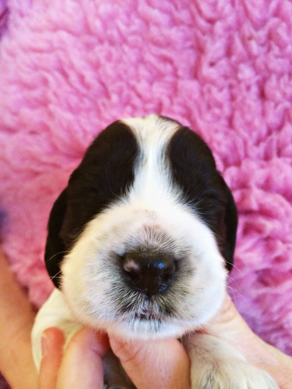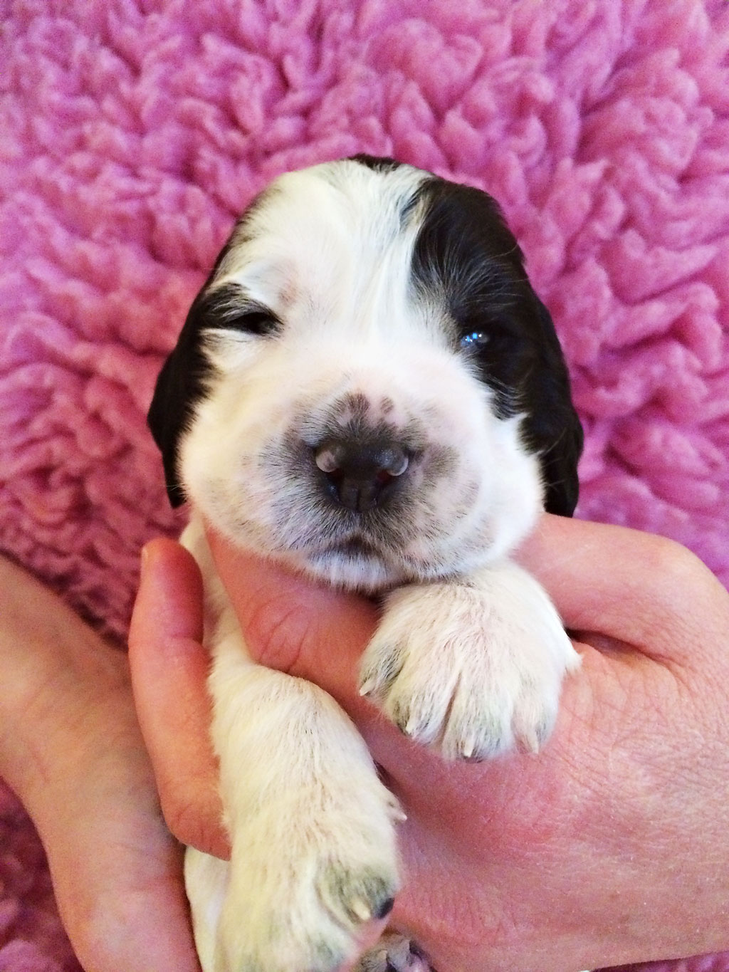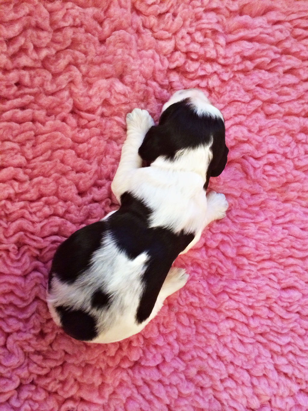 To uker har gått siden disse åtte hjerteknuserne ble født. Tiden har gått utrolig fort! Nå har to av valpene, Adira og Ace, begynt å få øyne. Synet er ikke utviklet enda, det utvikles gradvis i dagene og ukene som kommer. Alle valpene stabber nå rundt i valpekassa, men det går ikke lange stunden før de faller i søvn igjen. Vektutviklingen er fin, alle har fordoblet fødselsvekten sin og er friske og raske. Herlig! 🙂 De har fått ormekur, og jeg har klipt klørne deres to ganger allerede. Kloklipp må til, for de har skarpe små klær som kan irritere juret når de dier.