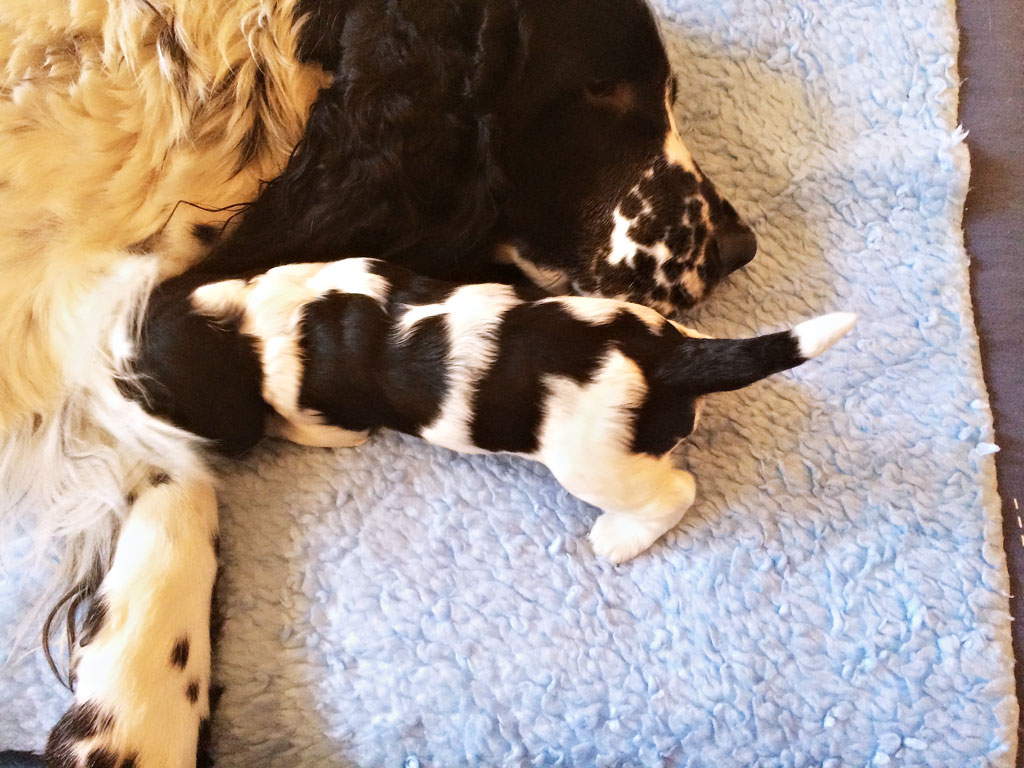 Jeg er veldig fornøyd med at alt har gått så bra. Tenk, vi har ikke hatt behov for veterinærhjelp verken i drektigheten, under fødselen eller tiden etterpå. Det har imidlertid vært godt å kunne spørre Inger Handegård ved Kennel Desperado, Ellen Getz Wold ved Kennel Kahill og Lise Tromsdal ved Kennel Coco Line til råds da! 🙂 Tusen takk til Tommy og Nora for hjelp med bildene 🙂