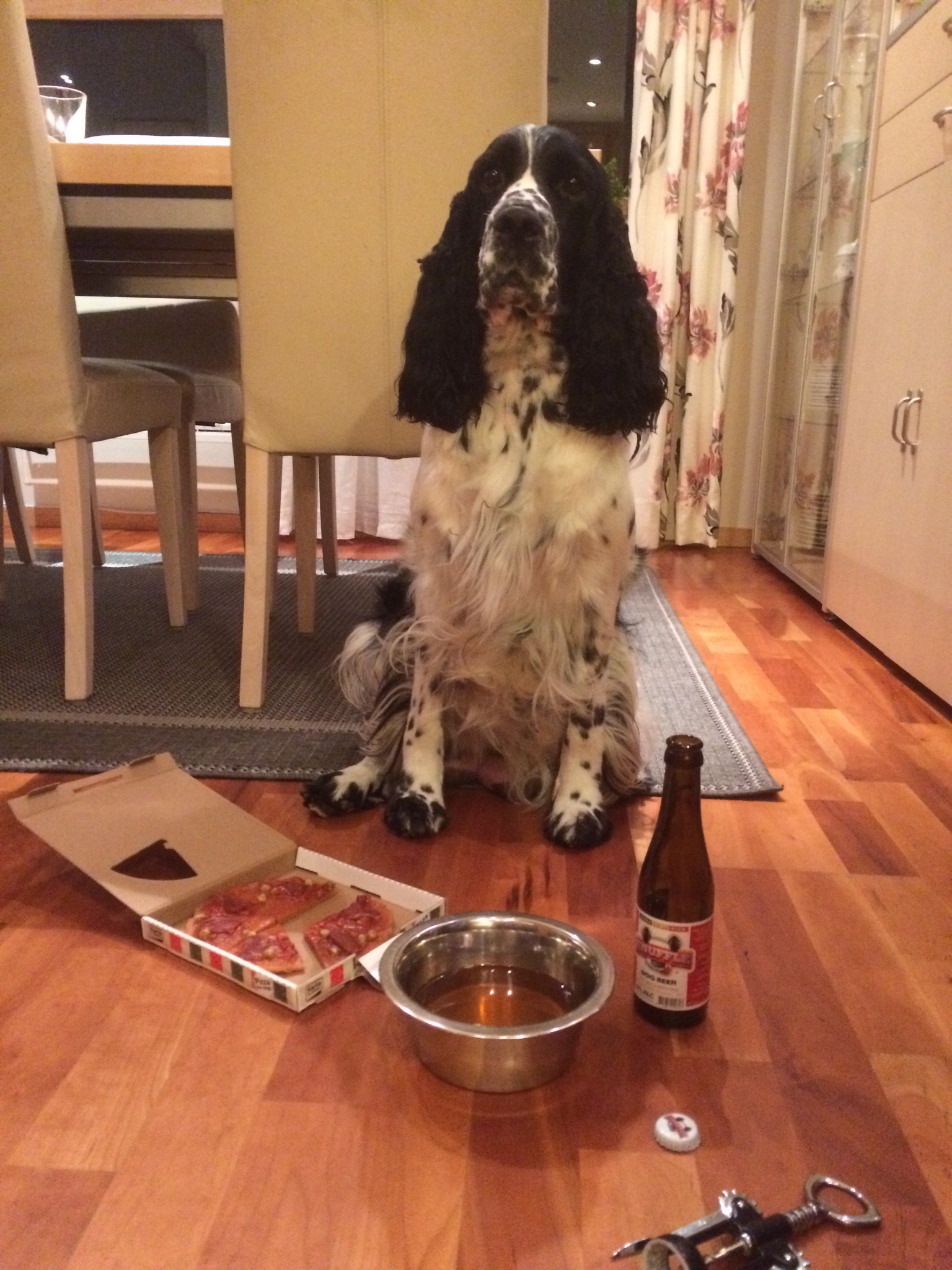 Bitten har fått en flott barselgave av sin gode venninne Molly (Mi Mio’s Wing Release) med familie 🙂 Gaven var en hundepizza og hundeøl!