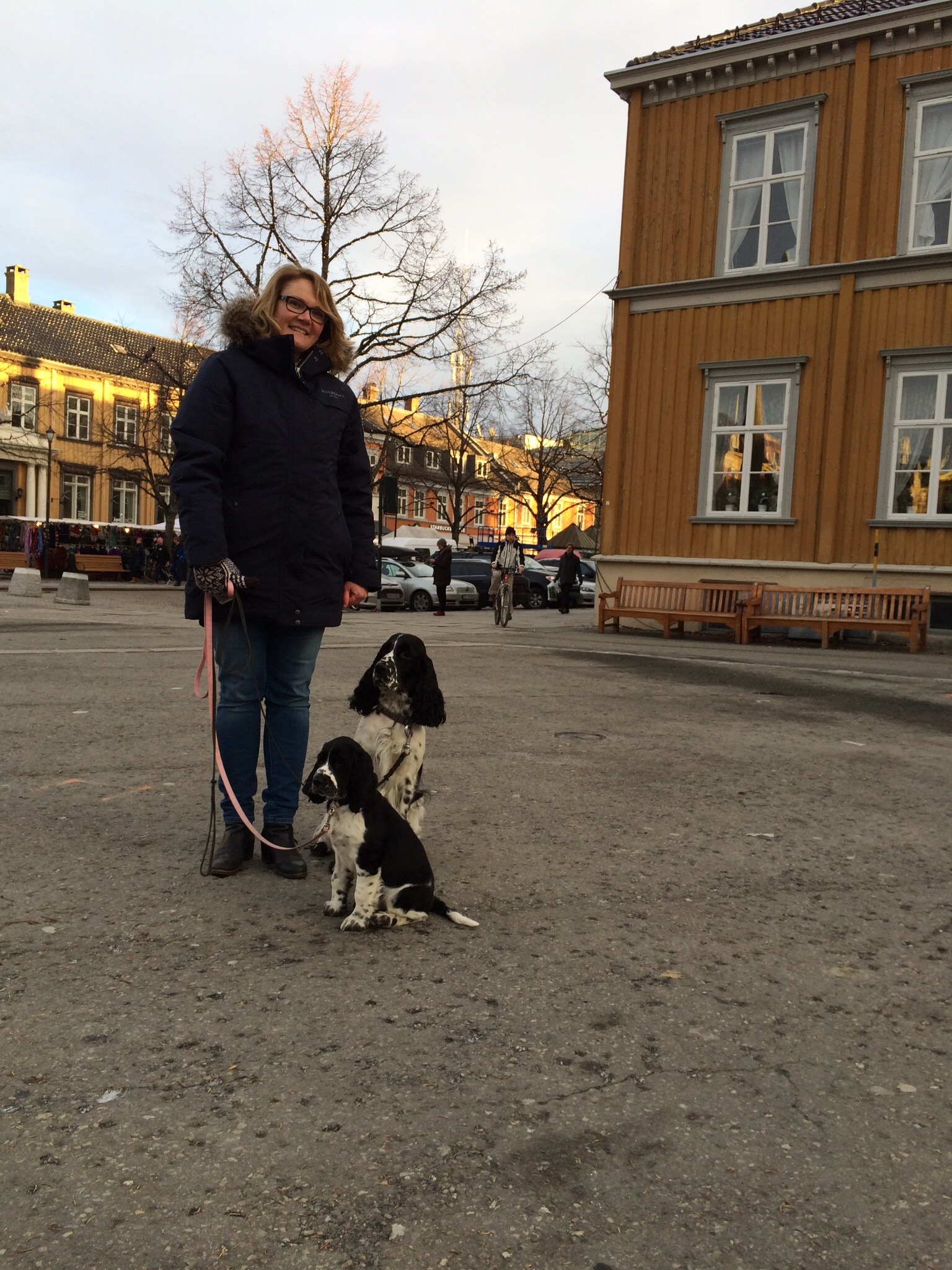 På lørdag tok Tommy og jeg turen til Midtbyen for litt miljøtrening. Vi delte oss i to grupper slik at hundene skal få trent hver for seg. Det er spesielt viktig for valpen, men jeg tror Bitten også setter pris på litt alenetid.