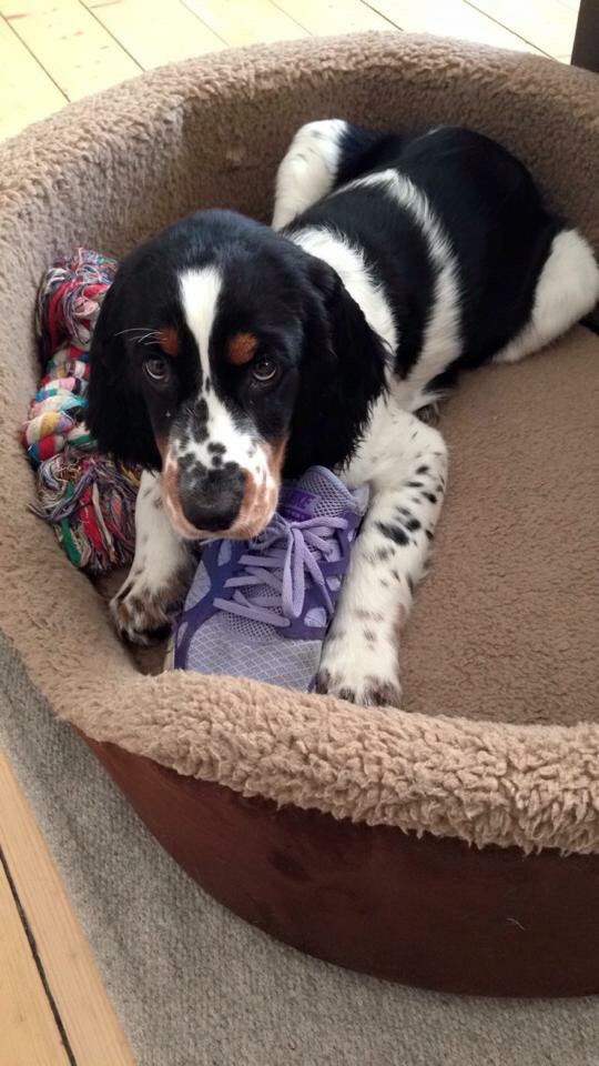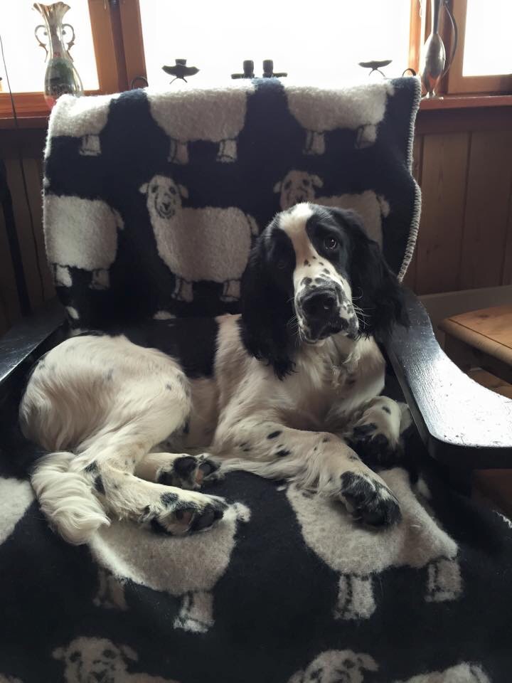 Tenkte jeg skulle dele noen fine hverdagsbilder av valpene 🙂 I forbindelse med bursdagen min fikk jeg dette koselige bildet av skotyven Copper (Engsoleias Aidan):