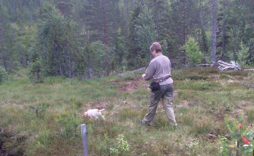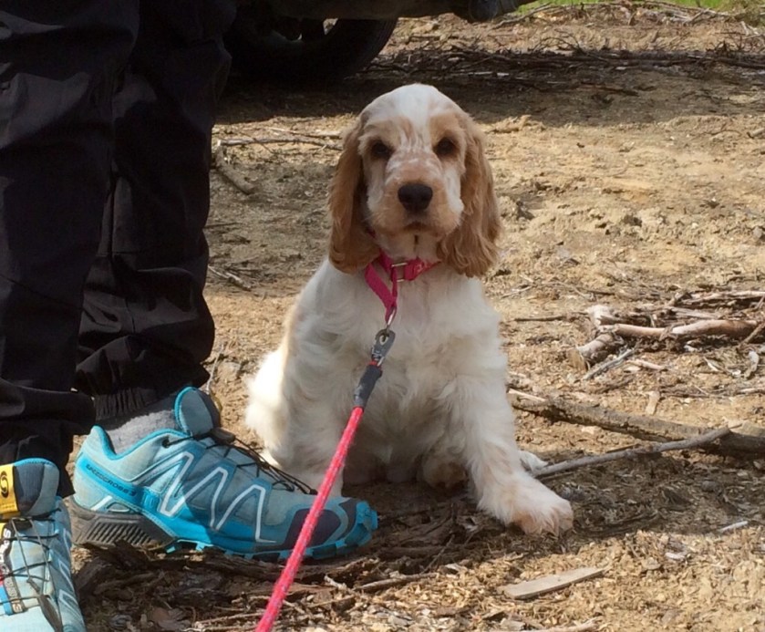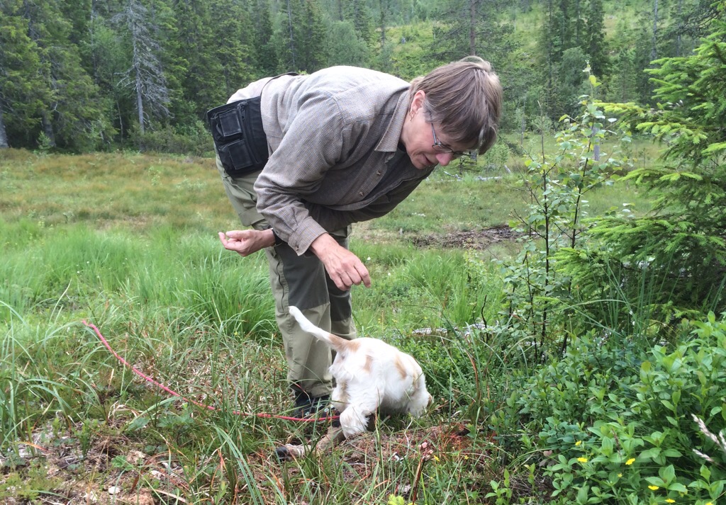 Sist helg hadde Wenche lagt et fint treningsspor til oss i Selbu. Nyttig trening! Lille Juni, Wenches tre måneder gamle cockervalp, var også med og trente. Tar med noen koselige bilder av henne; hun syntes blodet var interessant, tok villig opp sporet og fant skanken, hjortedyret som var skadd og måtte finnes. Hensikten med å trene på blodspor er å gjøre hunden i stand til å søke etter skadet hjortevilt slik at det kan avlives på riktig måte.