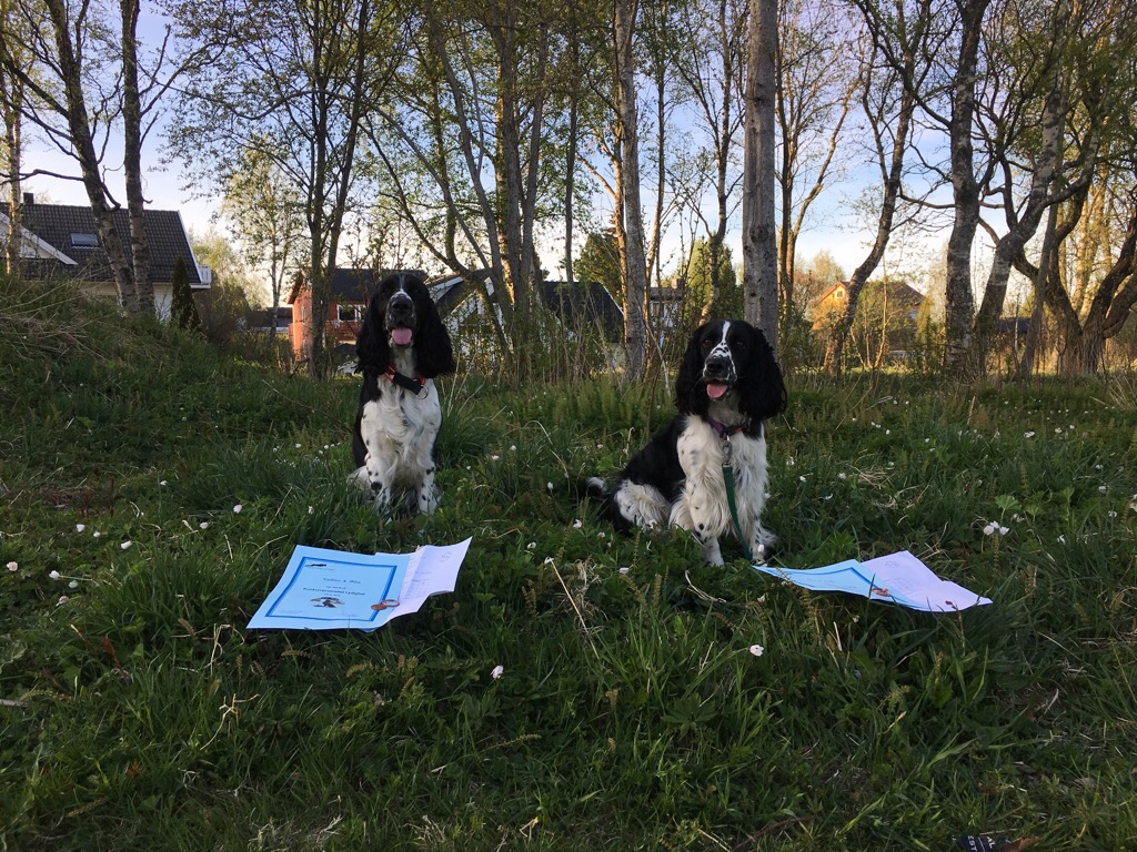 De to søstrene Engsoleias Alina (Birka) og Engsoleias Alexa tok i går bronsjemerket i lydighet! Birka er eid av Anne og Berit Valstad-Aalmo.
