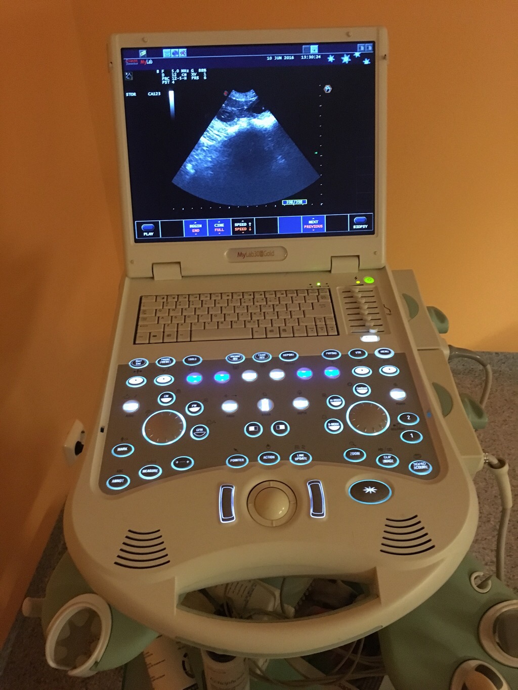 Veterinæren fant to fosterblærer ved ultralydundersøkelsen. Det kan være flere foster, men dette er usikkert. Ved forrige kull så vi fire, og da fikk hun åtte valper. Det er lov å håpe på mer enn to, men samtidig må vi innstille oss på at det kanskje blir to denne gangen. Det er ikke så kjekt med tanke på at det er mange som ønsker valp fra dette kullet.