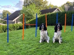 Vi lagde oss en rallytreningsbane i hagen en av de første dagene etter at utbruddet ble kjent. Lydighets- og rallymomenter trener vi på i hagen eller på turer. Noen ganger har vi godbitsøk inne eller i hagen. Ellers går vi turer gatelangs og i marka med hundene i bånd. Hundene trenger aktivitet og mosjon 🙂 Vi unngår gjørmehull og vanndammer der det kan oppstå bakterievekst, og jeg prøver å hindre at hundene snuser for mye der andre hunder har vært.